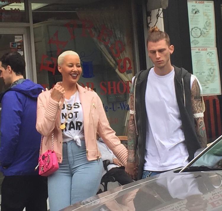 NYC yesterday, according to bystanders, he grabbed her booty . MGK has collaborated with Wiz Khalifa a ton in the past, and Amber was JUST talking up her ex in interviews –Interesting.
